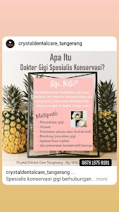 Crystal Dental Care merupakan Tempat Praktek Dokter Gigi Spesialis di Gading Serpong. Kami berkomitmen memberikan pelayanan perawatan gigi profesional dengan teknologi modern dan suasana yang nyaman. Didukung oleh dokter gigi spesialis periodonsia dan spesialis konservasi berpengalaman, kami melayani berbagai kebutuhan perawatan gigi seperti scaling, penambalan, pencabutan, perawatan saluran akar, veneer, bleaching (pemutihan) gigi, implan, gigi palsu, hingga behel gigi untuk mempertahankan dan mempercantik senyum Anda. Dengan standar kebersihan tinggi dan pelayanan ramah, Crystal Dental Care Gading Serpong siap menjadi pilihan terpercaya untuk menjaga kesehatan gigi Anda. Kunjungi kami dan dapatkan pengalaman perawatan gigi terbaik!